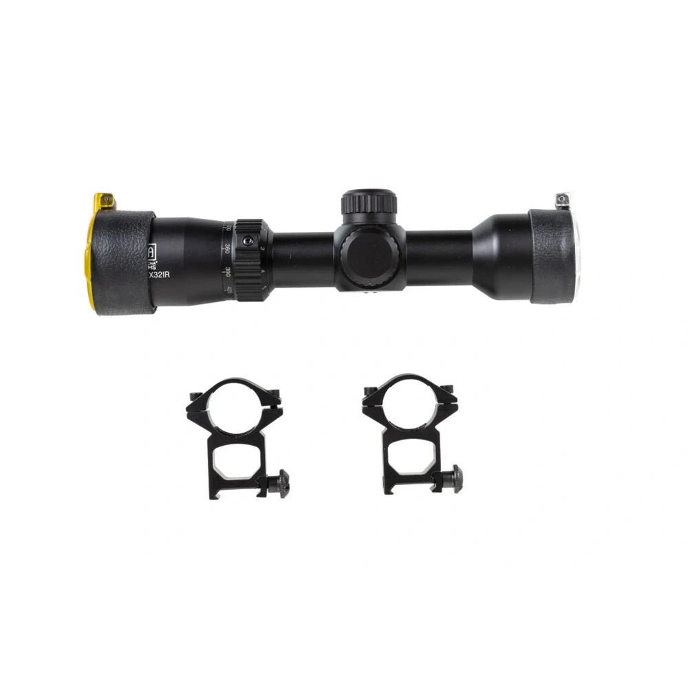 The Specna Arms 1.5-5x32 EG scope from the manufacturer offers the ability to illuminate the crosshair in three colors: red, green and blue, which facilitates effective operation even in night games (each color has 3 levels of illumination intensity). The scope has a variable magnification of x1.5-5, which allows it to be used in various situations regardless of the type of scenario, while the transparent covers make the scope protected even during intense shooting. The scope has a high-strength mil-dot aiming crosshair, and convenient buttons allow for vertical and horizontal adjustment (1 click = 1/4" at a distance of 100 yards). The kit includes a two-piece mount for mounting on a RIS rail.