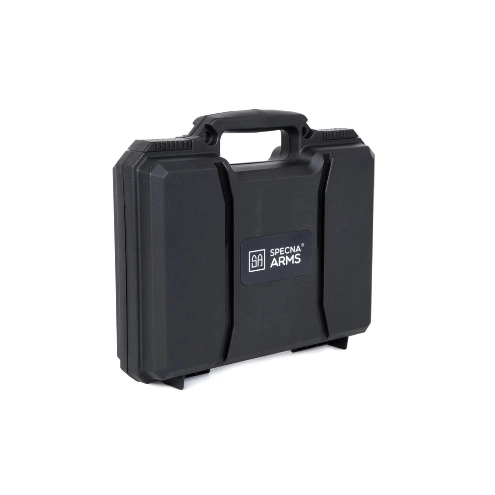 The box has a convenient carrying handle, closes with two sliding clasps, and the front of the box is decorated with the Specna Arms brand logo.