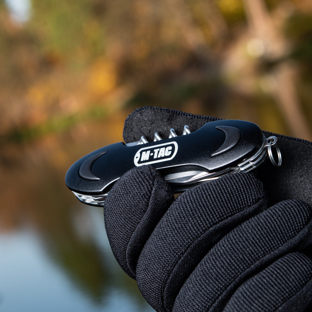 M-Tac salokāmais nazis (7 instrumenti) savā funkcionalitātē var sacensties ar līdzīgiem izstrādājumiem no pazīstama Šveices zīmola. Komplektā kopā ar praktisko salokāmo asmeni ir 7 instrumenti. Tajā pašā laikā kompakti izmēri un mazs svars, ļauj to pastāvīgi nēsāt līdzi.