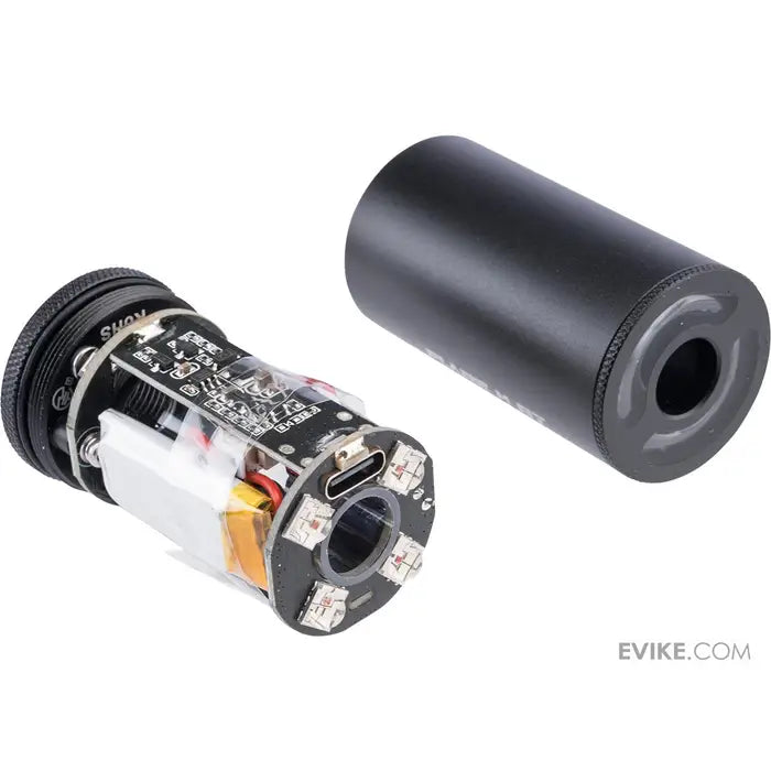 Eshooter Tracer Unit uzlabotā versija! Tas ir ne tikai tracer, bet arī hronogrāfs. Pieslēdzoties Eshooter APP, šis tracer klusinātājs ar vienu pieskārienu piedāvā daudzas pielāgošanas iespējas, lai iegūtu unikālus gaismas starus. Eshooter Tracer Unit sērijas pirmais solis! Ar savu gludo dizainu šis kompaktais aparāts nodrošina spilgtu gaismu aiz katra BB, garantējot precīzu šāvienu izsekošanu. Izbaudiet uzlabotu redzamību un precizitāti spēles laukā gan dienā, gan naktī. Dominējiet ar Eshooter Flare Tracer un izgaismojiet savus mērķus ar precizitāti. Saglabājiet drošību, ievērojiet noteikumus un uzlabojiet savu airsoft spēli ar šo revolucionāro tracer klusinātāju.