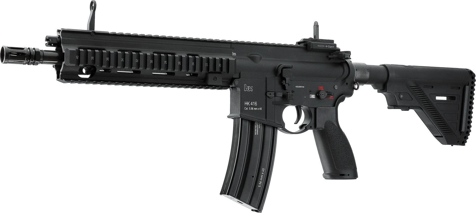 Ar savu uzmanību detaļām un iespaidīgo izskatu HK416 A5 ir viens no populārākajiem ieročiem airsoft pasaulē. Turklāt tehnoloģijas un izgatavošanas kvalitātes ziņā tas atbilst visām spēlētāju vēlmēm: pilnībā metāla replika ir piemērota gan labročiem, gan kreiļiem un ir aprīkota ar integrētu MOSFET. Pateicoties regulējamam Hop-Up un 1,5 džoulu BB enerģijai, katra BB no Hi-Cap aptveres trāpa mērķī. Jālieto tikai LiPo akumulatorus. Ar M14x1 CCW stobra vītni.