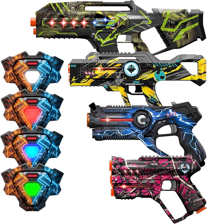 Комплект для лазертага с 4 пистолетами и 4 жилетами