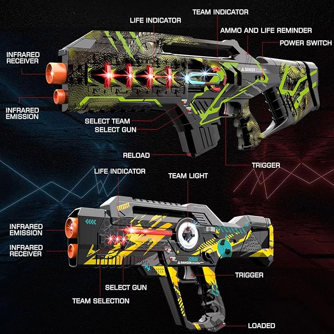 Перезаряжаемый лазертаг с 8 аккумуляторами и USB-кабелем «4 в 1» — вам не придётся беспокоиться о питании и прерывать игру, чтобы заменить несколько десятков батареек. В обычном режиме игры лазертаг может работать около 6 часов, а жилеты — около 3 часов каждый от одной полной зарядки.